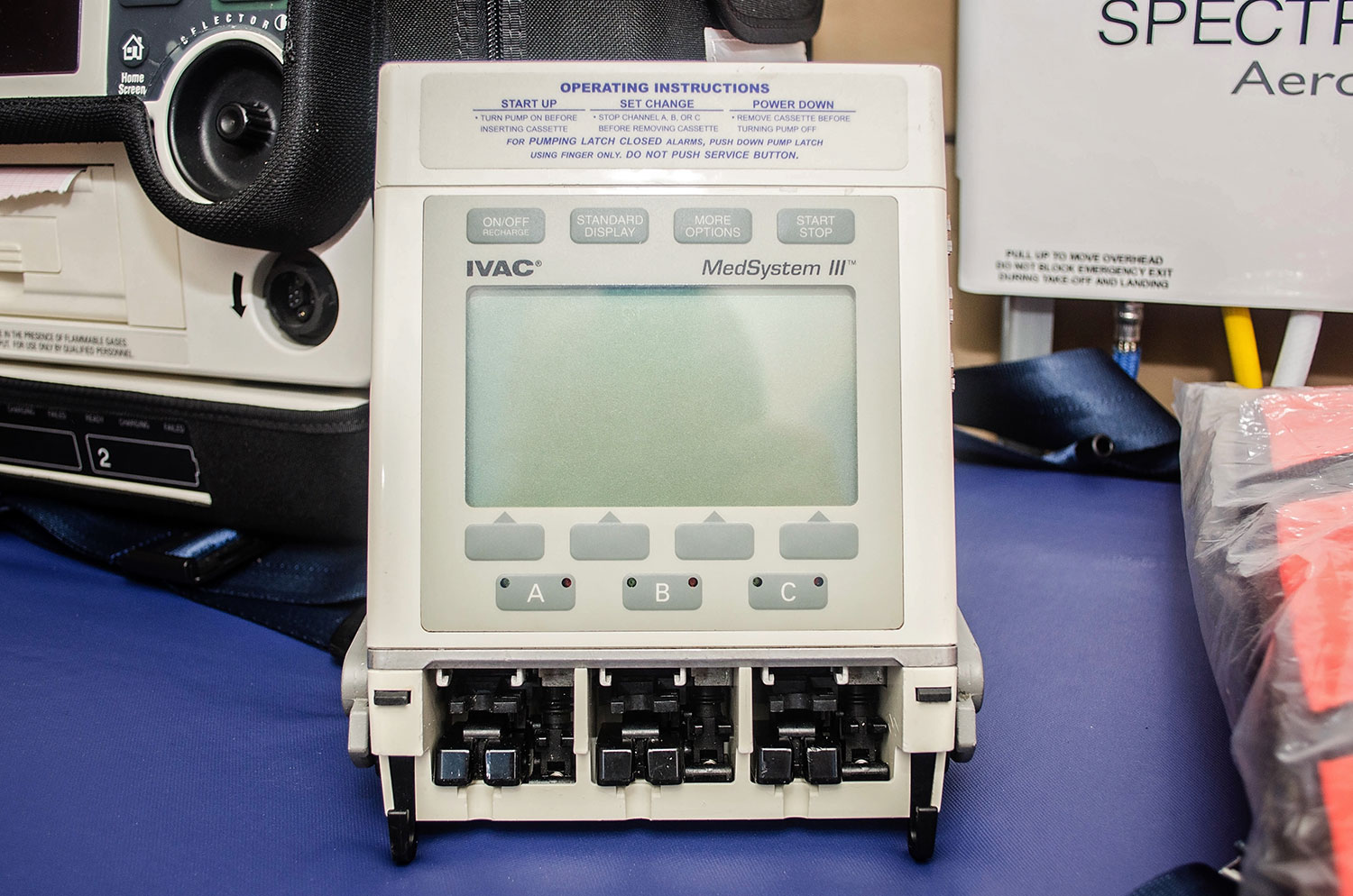 • Aircraft is configured with two 3-channel IV pumps for multiple drip capabilities