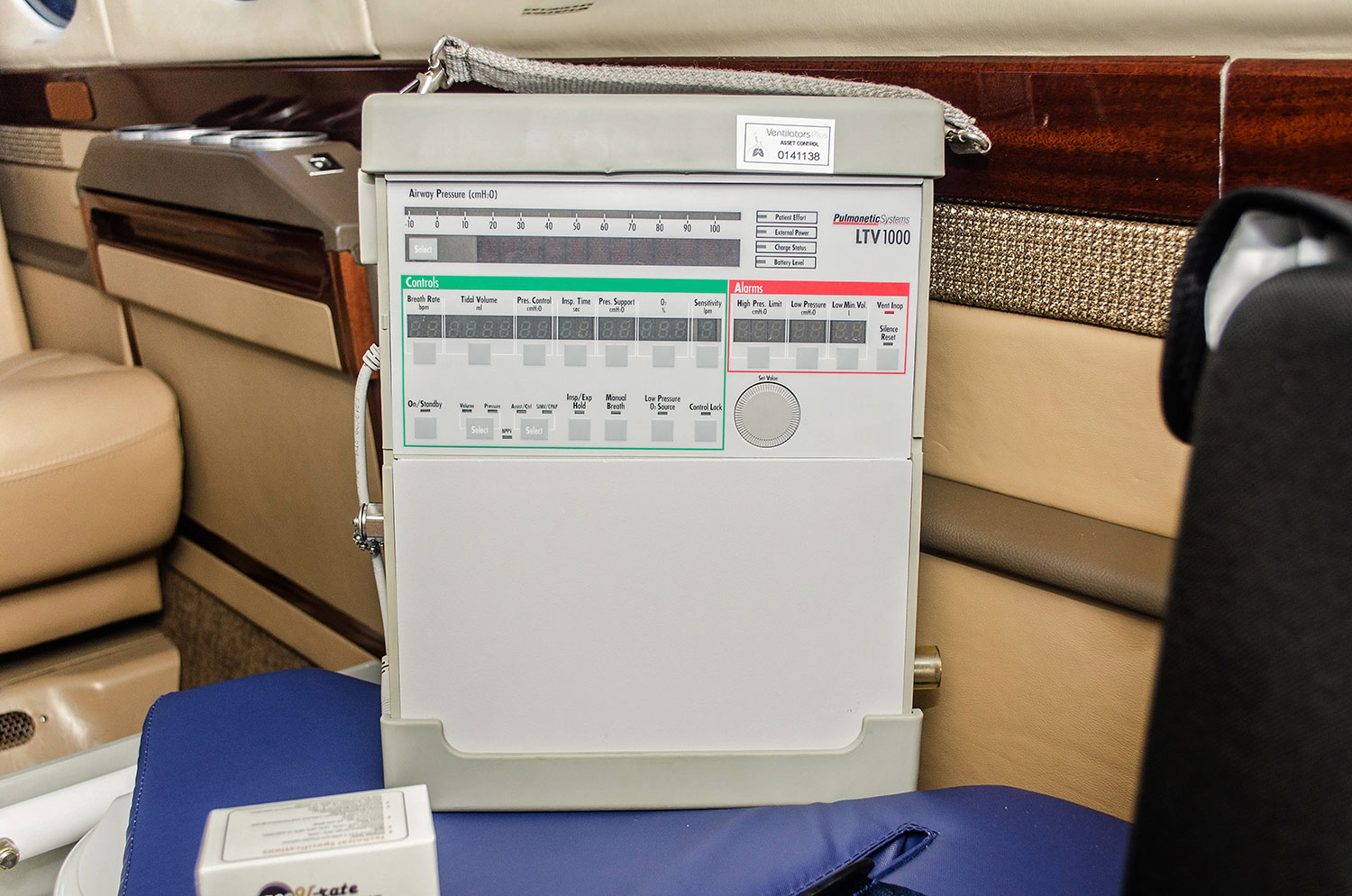 • Houses ALS components necessary to sustain a critical patient for an extended flight